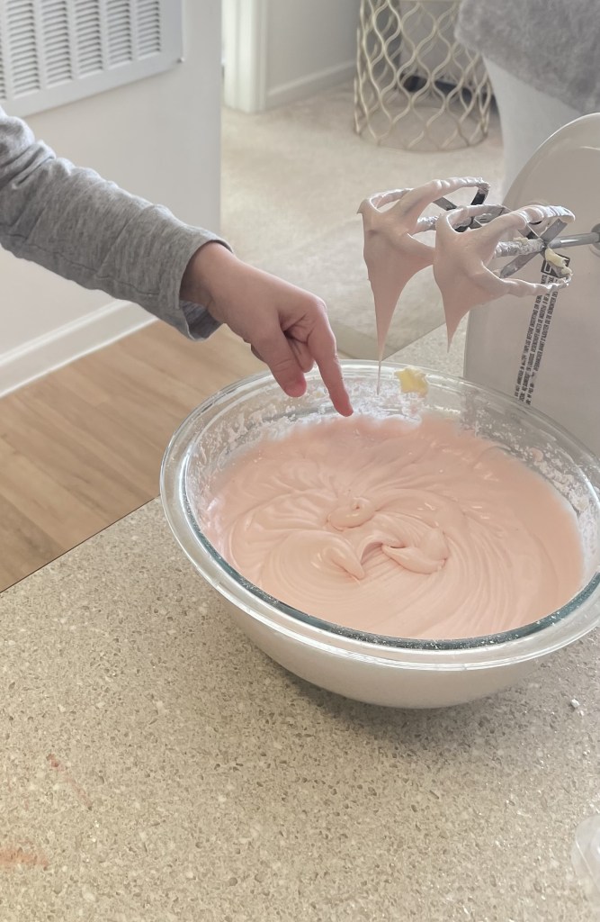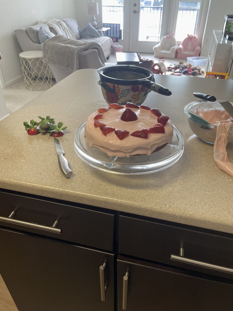Ok guys, I promise I won’t post a recipe next week lol. Cooking and baking is a big part of my life and I truly enjoy both, so I get excited to share fun recipes! I mentioned on my IG (@beautyandthemamablog) that my oldest daughter loves to join me in the kitchen. She randomly requested a pink cake over the weekend, so this is how we wound up here. I am still learning how to bake a good cake, but this came out really, really good! I brought it to a dinner and everyone enjoyed it. Also, who doesn’t love a pink cake? It was so pretty. The cake is sweet with a hint of strawberry and the texture is spongy. A 10 out of 10.