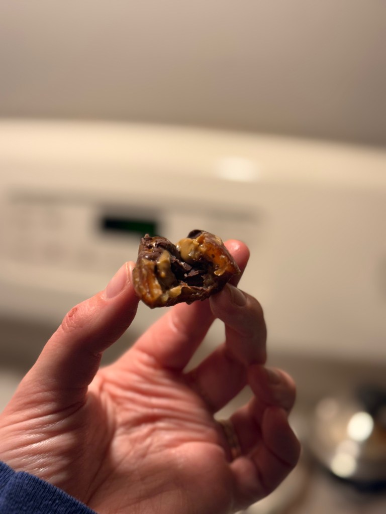 This recipe reminds me of a healthy snickers. The flavors together are incredible and I can’t get enough. This is my go-to nighttime dessert. I make these like 5 times a week lol.